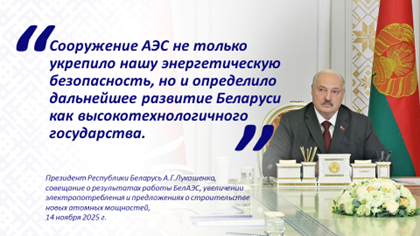 Запуск первой белорусской атомной электростанции дал старт новому этапу развития страны. Как отметил Глава государства А.Г.Лукашенко 14 ноября 2025 г.: «Сооружение АЭС не только укрепило нашу энергетическую безопасность, но и определило дальнейшее развитие Беларуси как высокотехнологичного государства».